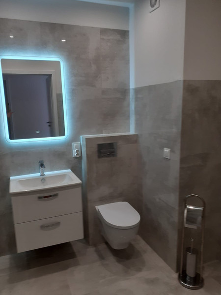 Łazienka z prysznicem. Mieszkanie mieści się w budynku 4 piętrowym na 1 piętrze (bez windy),bardzo ciepłe, jasne i słoneczne.
