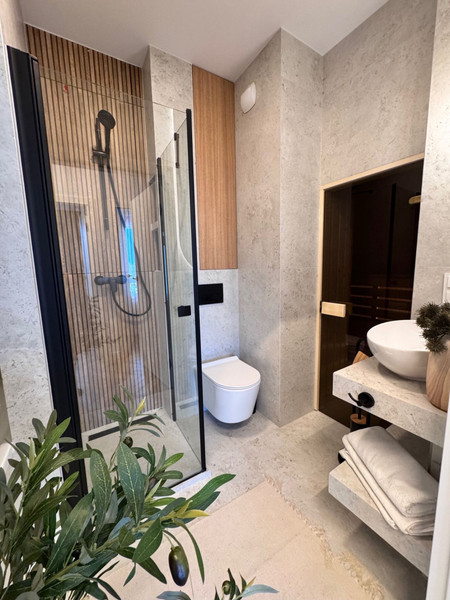 • pierwsza – luksusowa strefa relaksu z wanną z hydromasażem, prysznicem i prywatną sauną,