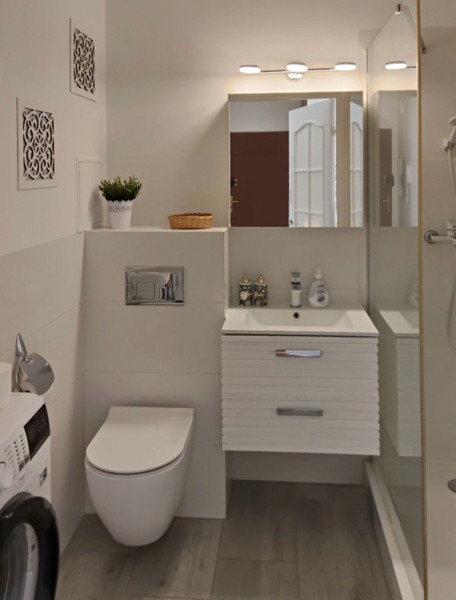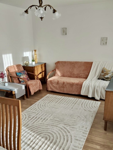Mieszkanie jest zadbane, ciepłe i widne. Usytuowane jest od strony południowej, na 2 piętrze 4-kondygnacyjnego budynku (nowe budownictwo). W pełni umeblowane i wyposażone w sprzęty AGD, z dużą ilością miejsc do przechowywania. Niedawno odświeżone powłoki malarskie na ścianach i sufitach. Tapicerowane elementy oraz dywan zostały wyprane.