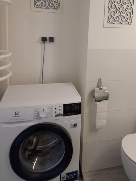 Do dyspozycji: łóżko z materacem w sypialni (120x200), kanapa z funkcją spania, fotel oraz rozkładany stół z 6 krzesłami w salonie, pojemne szafy i szafki, pralka, odkurzacz, telewizor, lodówko-zamrażarka, kuchenka gazowo-elektryczna (elektryczny piekarnik), mikrofalówka, naczynia, talerze, sztućce, lustro w przedpokoju.