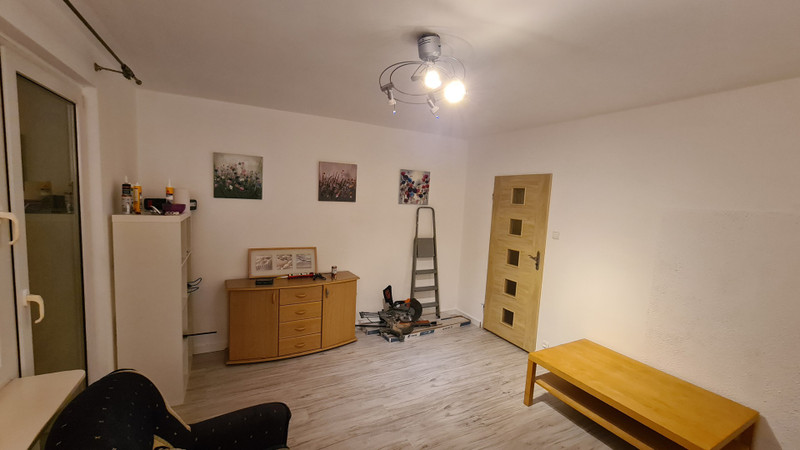 W zależności od pomieszczeń na podłogach nowe panele oraz kafle. Ściany- tynk gipsowy, świeżo malowane.