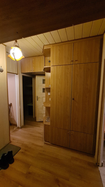 W korytarzu i pokoju duże szafy pod zabudowę.
