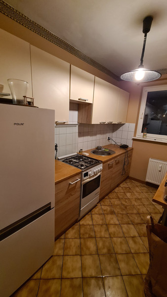 Kuchnia zabudowana i wyposażona (lodówka, kuchenka, piekarnik, pochłaniacz powietrza. itp.). Łazienka cała w kafelkach, z wanną.