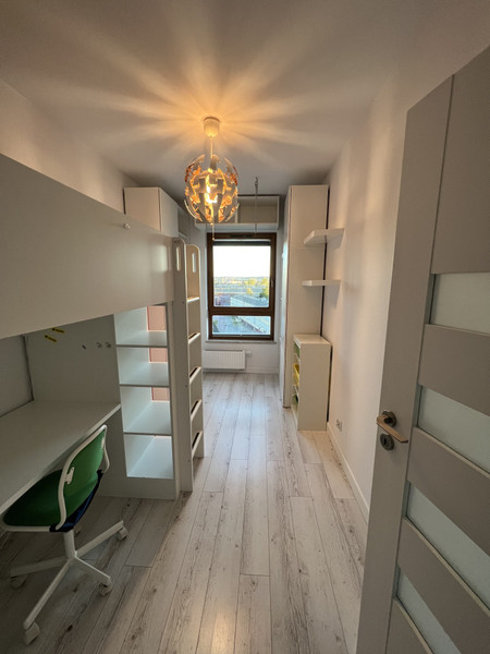 Mieszkanie jest bardzo słoneczne — przez większość dnia pełne naturalnego światła, co zimą przekłada się na niższe rachunki za ogrzewanie.