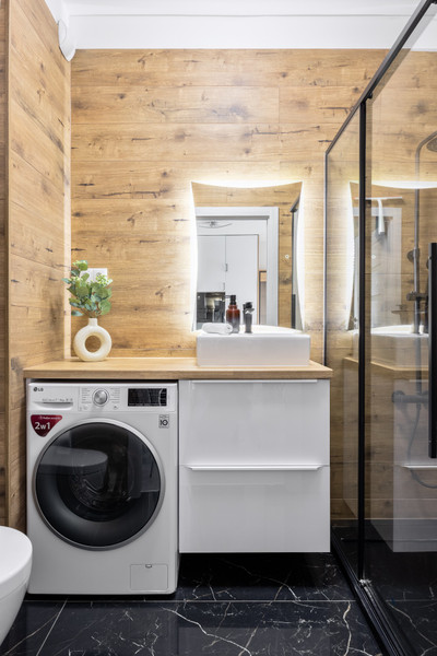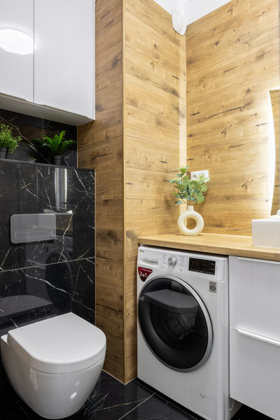 Na wyposażeniu mieszkania znajdują się również sprzęty takie jak odkurzacz oraz suszarka.