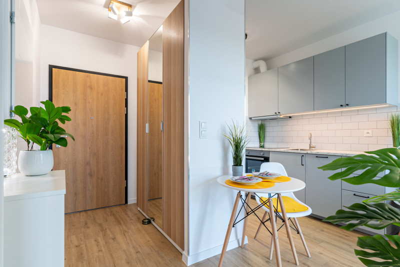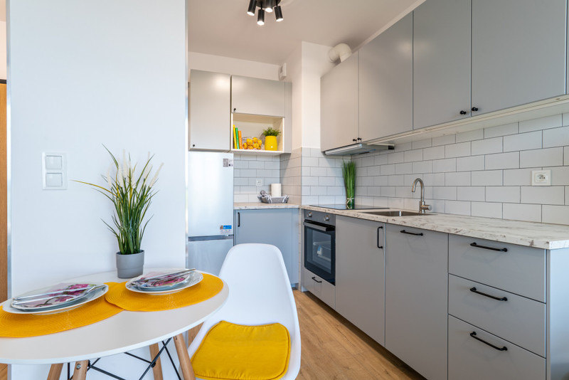 • Pełne nowe, objęte gwarancją wyposażenie mieszkania, sprzęt AGD, indukcja, piekarnik, zmywarka, pralka, dwie przestronne szafy na ubrania, szafka na buty.