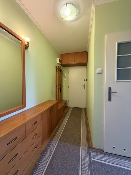 •korytarz zabudowany zgrabnymi szafkami z obowiązkowym „mini pawlaczem”