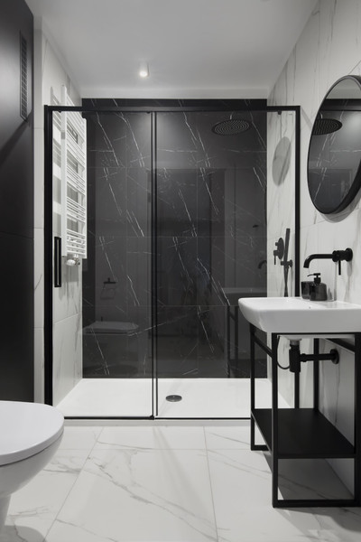 • elegancka łazienka z prysznicem