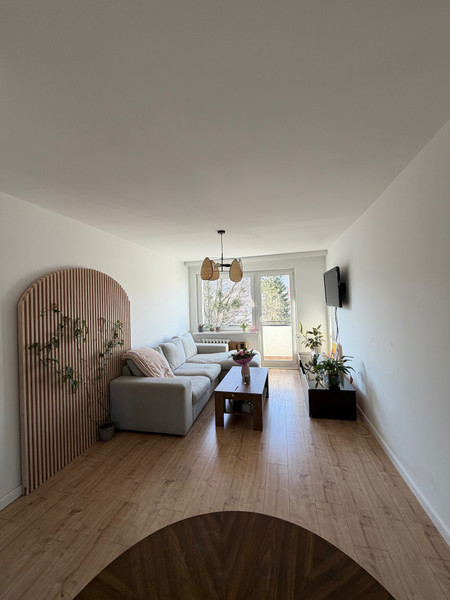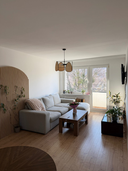 Do wynajęcia jasne i funkcjonalne mieszkanie o powierzchni 46m^2, składające się z 2 pokoi, kuchni i łazienki z prysznicem. Dodatkowo duży balkon z widokiem na zieleń oraz piwnica.