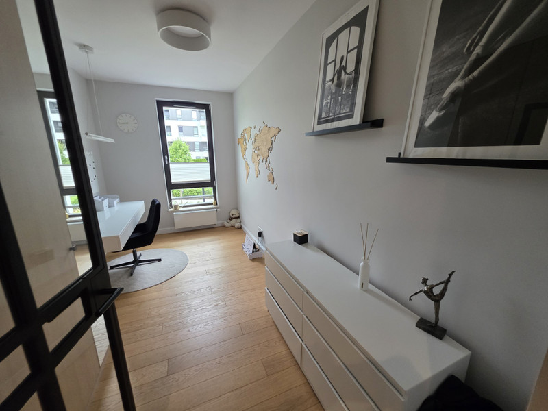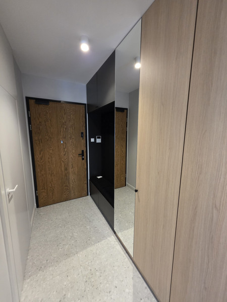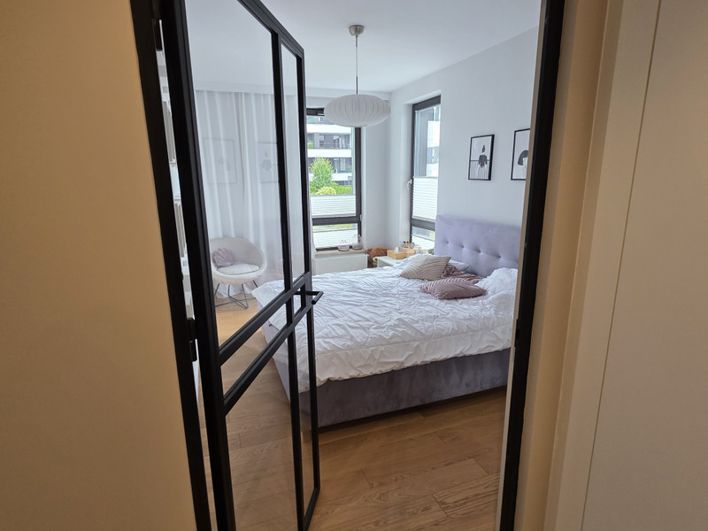 Do wynajęcia nowoczesne, jasne i funkcjonalne mieszkanie na 1. piętrze 4-piętrowego budynku z 2016 roku (dostępna winda). Lokal składa się z sypialni, gabinetu, garderoby, łazienki, korytarza, salonu z aneksem kuchennym, pomieszczenia gospodarczego oraz balkonu.