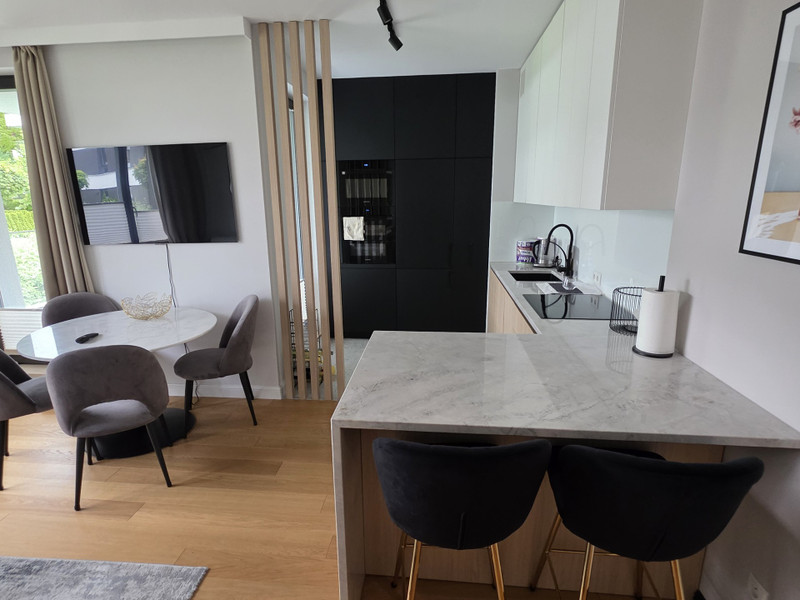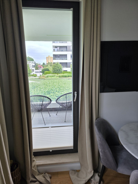 Mieszkanie jest w pełni umeblowane i wyposażone (AGD, TV, pełne wyposażenie kuchni). Internet w cenie. Okna wychodzą na spokojne, wewnętrzne patio - z dala od hałasu ulicznego.