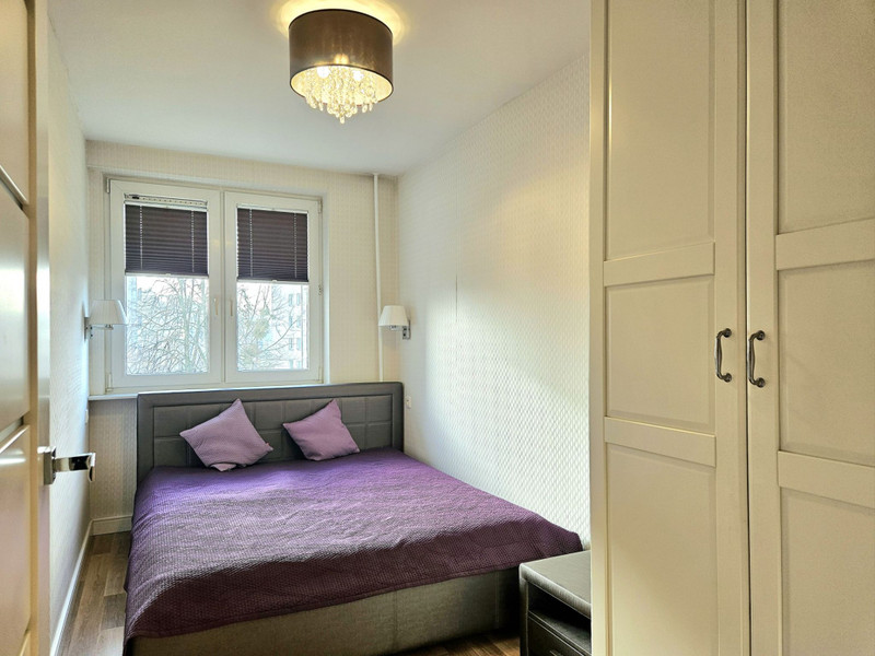 Mieszkanie znajduje się na 3. piętrze w 10 - piętrowym, ocieplonym i odnowionym budynku z lat 70-tych. Na powierzchnię 39m2 składa się jasny salon (z małym balkonem), połączony z w pełni wyposażonym aneksem kuchennym (piekarnik, lodówka, zmywarka, pochłaniacz, płyta gazowa), sypialnia z łóżkiem o szer. 160 cm oraz szafą, przedpokój oraz łazienka z nowym wyposażeniem - narożną kabiną prysznicową, toaletą, umywalką z szafką. Mieszkanie posiada ekspozycją południową, dzięki czemu jest nasłonecznione i jasne. We wszystkich oknach zamontowane zostały zaciemniające plisy.