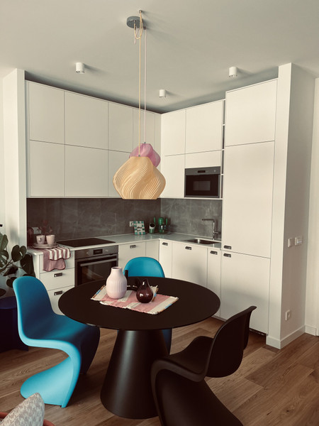 Designerskie wnętrze zostało urządzone z dbałością o detale przez renomowane biuro architektoniczne. Doświetlone dzięki południowej ekspozycji okien i balkonu.
