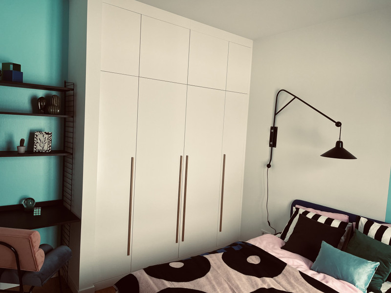 • Sypialnia z podwójnym łóżkiem, miejscem do pracy, szafą w zabudowie