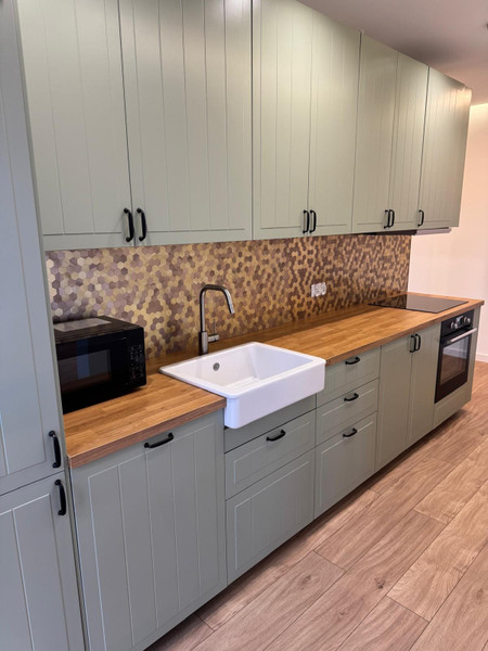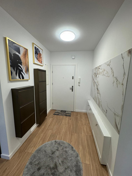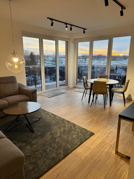 Utrzymany jest w wysokim standardzie wykończenia z dbałością o każdy detal. Do dyspozycji najemcy pozostaje widoczne na zdjęciach umeblowanie i sprzęty AGD i RTV oraz podstawowe wyposażenie miedzy innymi: serwis obiadowy, garnki, patelnia, sztućce, mikrofalówka, żelazko, deska do prasownia, suszarka na bieliznę i inne.