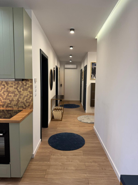 Lokal składa się z przestronnego w pełni wyposażonego salonu z wyjściem na duży balkon z którego rozpościera się wspaniały widok, otwartą kuchnią, dwóch osobnych pokoi, łazienki, toalety i przedpokoju.