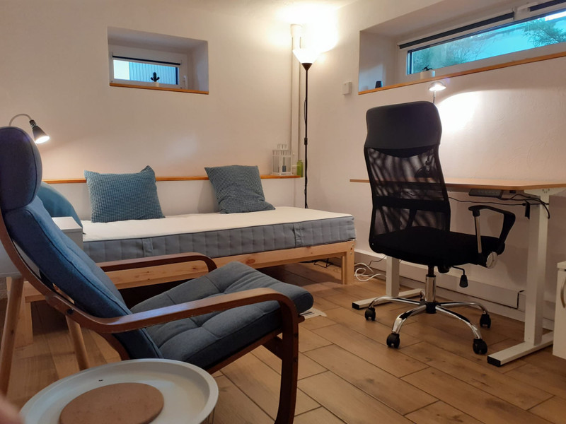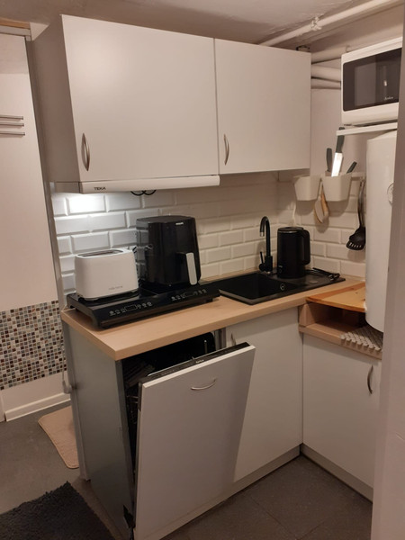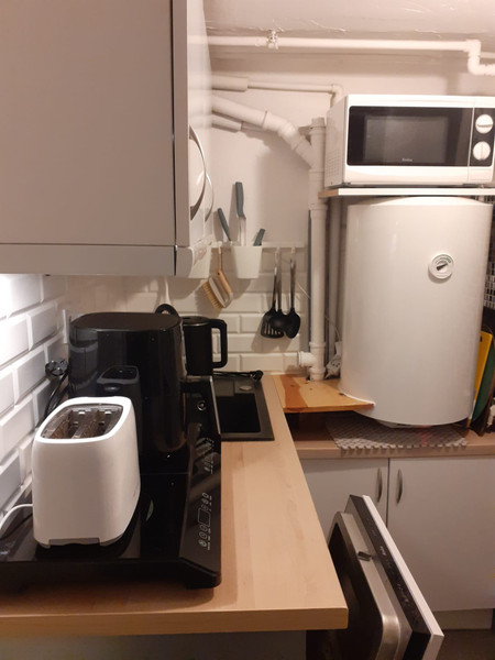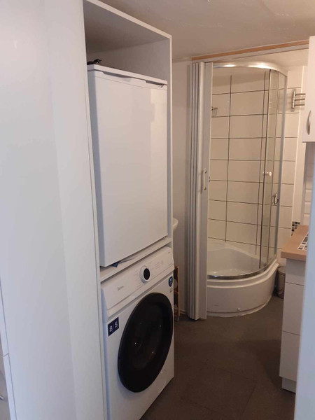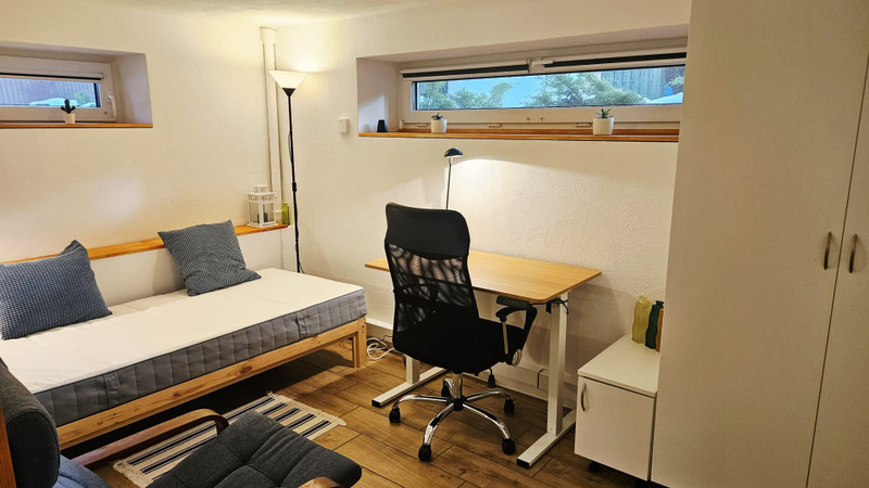 Niezależne wejście z kluczem, ogrzewanie podłogowe (zimą ok. 200 zł), podliczniki prądu i wody oraz światłowód. Pełna zabudowa – kuchnia + szafy, wyposażenie kuchenne. Meble: pojedyncze łóżko z nowym materacem, fotel IKEA poang z nową poduszką, oświetlenie górne, dwie lampy stojące. AGD: lodówka, zmywarka, pralko-suszarka, kuchenka indukcyjna (przenośna) dwupalnikowa, airfrayer, okap, mikrofalówka, czajnik, toster. słuchawki, biurko z regulacją elektryczną wysokości, fotel biurowy, komplet pościeli (kołdry lato/zima/poduszka/poszewki), ręczniki.