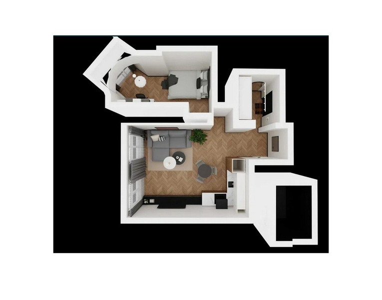It is possible to add a bed and a living room set (sofa/corner sofa + coffee table).