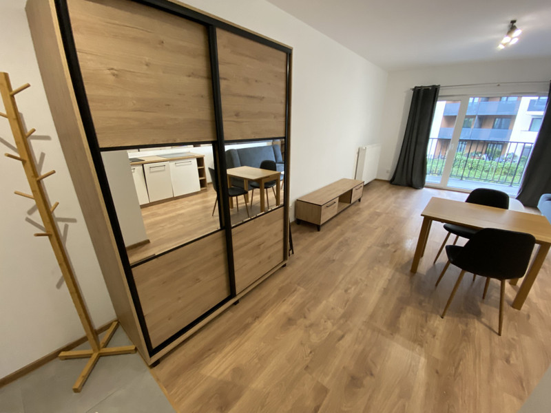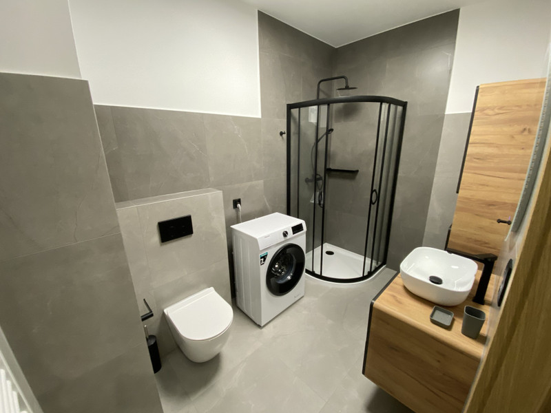 -nowe, w pełni wyposażone składające się z: dużego, przestronnego pokoju z meblami, sofą i dużą szafą, kuchnią (zmywarka, kuchnia indukcyjna), łazienka (pralka, prysznic), duży balkon