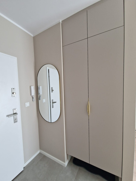 - przedpokój- wyposażony w lustro, szafę (schowek na mop, odkurzacz i wieszaczki na kurtki