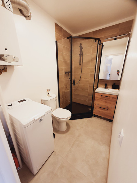 łazienka – z kabiną prysznicową, pralką
