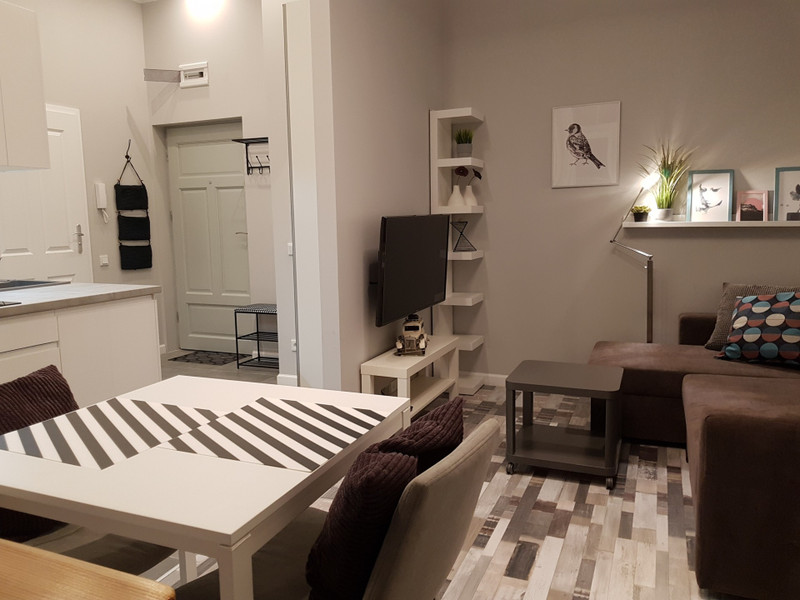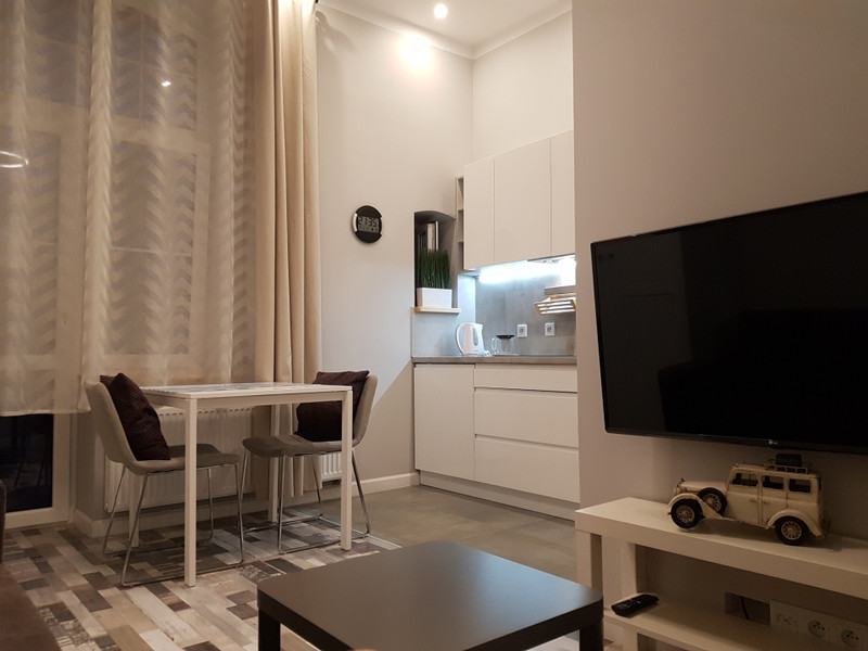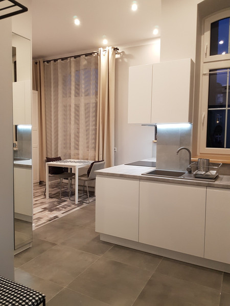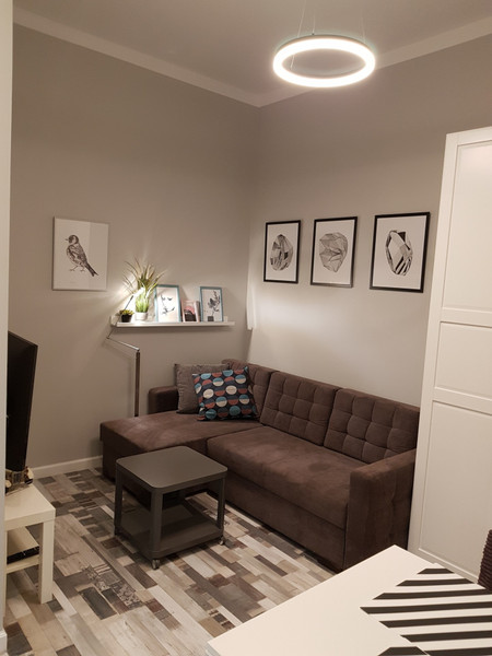 Nowocześnie urządzone mieszkanie 1-pokojowe z aneksem kuchennym, w pełni umeblowane i wyposażone. Mieszkanie w kamienicy po generalnym remoncie. Wszystkie instalacje nowe, ogrzewanie miejskie.