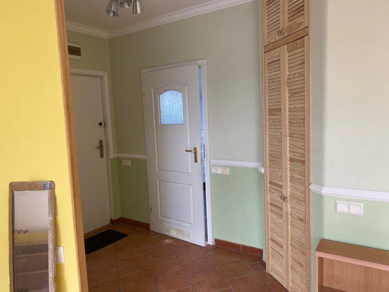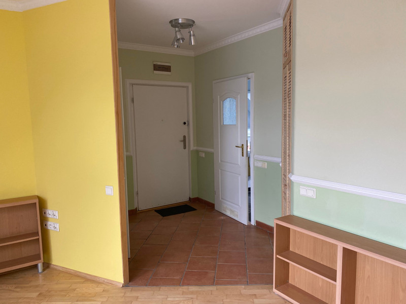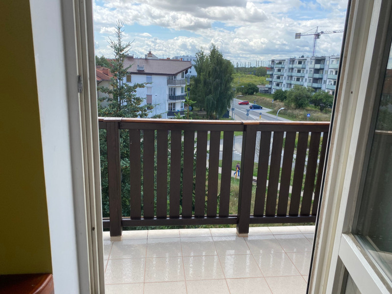 Mieszkanie obejmuje zamkniętą sypialnię, otwarty salon i jadalnię, połączoną z kuchnią oraz osobne, względnie duże i wygodne pomieszczenie robocze/schowek, z wejściem z klatki schodowej. Na piętrze tylko, łącznie, dwa mieszkania. Koszt wynajmu: 2,7 tys.zł i nadto opłaty dodatkowe: czynsz do Spółdzielni w okresie jesienno zimowym ok. 560 zł, w okresie wiosenno letnim ok. 450 zł; osobno energia elektryczna (zużycie wg. licznika) i wywóz nieczystości ok 90 zł.