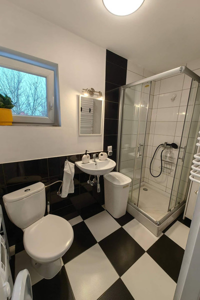 • Łazienka: duża i funkcjonalna, z prysznicem oraz pralką.