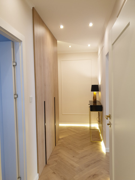 - Stylowy przedpokój z szafą na ubrania i buty oraz konsolą