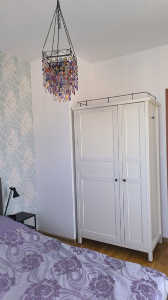 - Łazienka: wanna z prysznicem, umywalka, WC, pojemna szafa