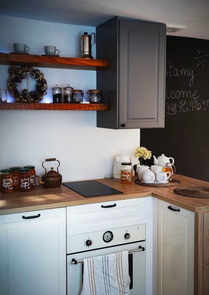 Apartament znajduje się w starym, malowniczym ogrodzie, który zapewnia poczucie spokoju i odcięcia od miejskiego zgiełku.