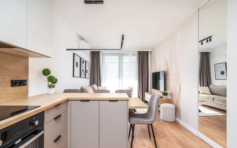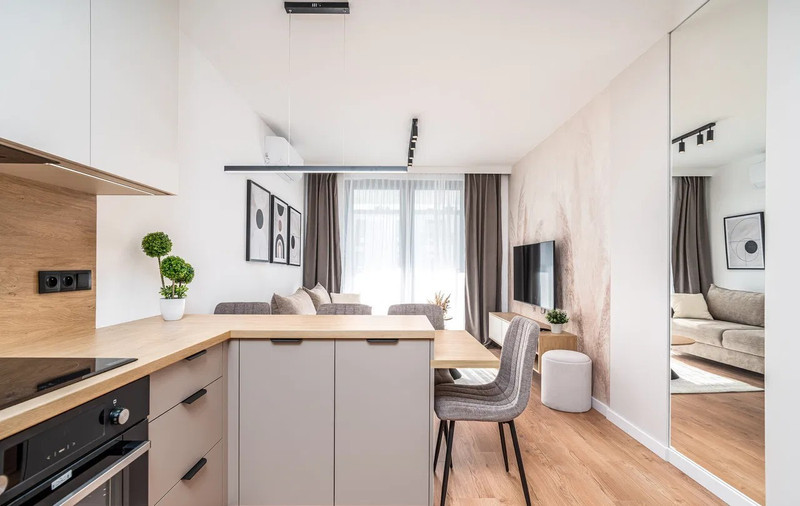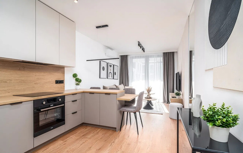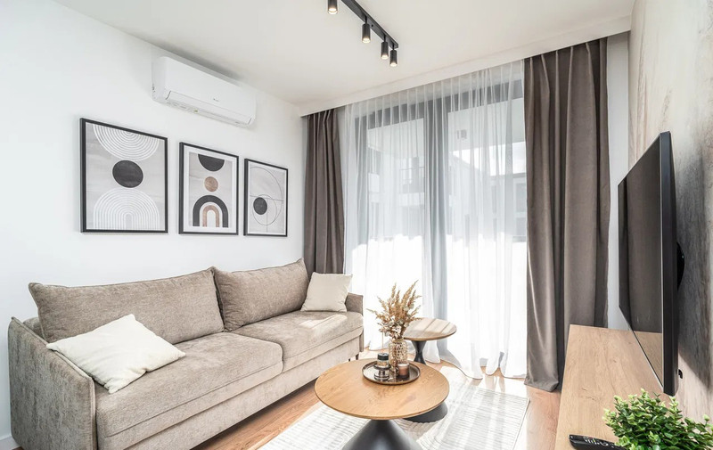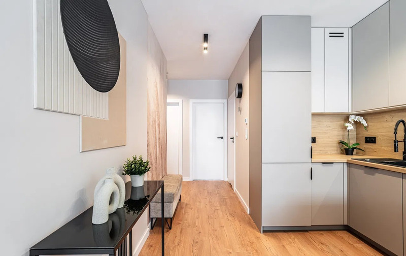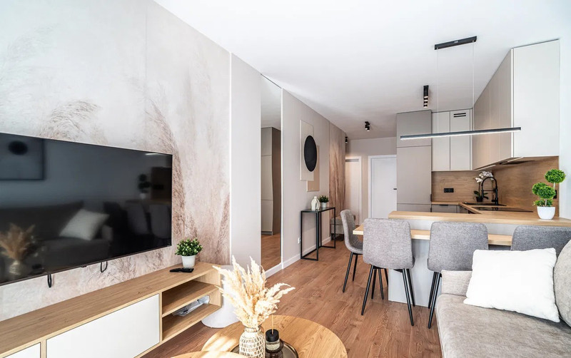 Wnętrze wykończone zostało z użyciem wysokiej jakości materiałów, z dbałością o każdy detal. Apartament jest jasny, nowoczesny i niezwykle komfortowy – idealny zarówno do codziennego życia, jak i pracy zdalnej.