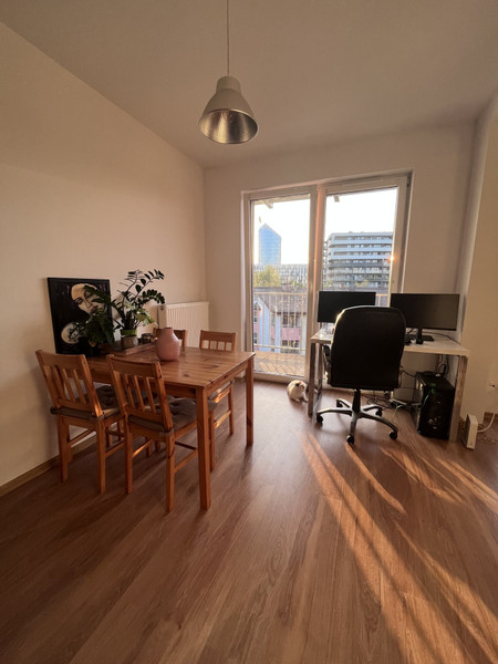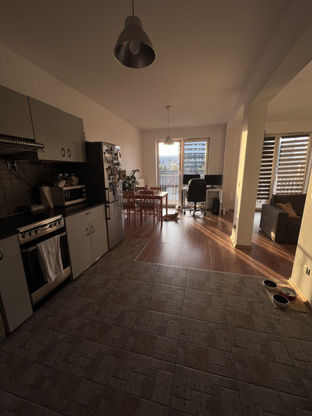 Do wynajęcia, bezpośrednio od właściciela, 2-pokojowe mieszkanie o powierzchni 50 m², na V piętrze eleganckiego budynku z windą, monitoringiem oraz dostępnym dla mieszkańców tarasem na dachu.
