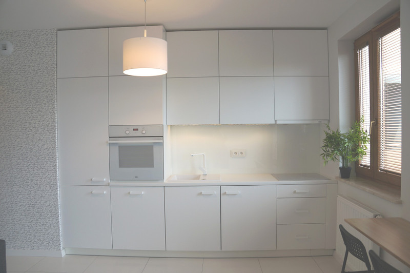 Mieszkanie jest w pełni umeblowane w wysokim standardzie. Wyposażenie m.in.: płyta indukcyjna, piekarnik elektryczny, lodówka z zamrażarką, zmywarka, pralka.
