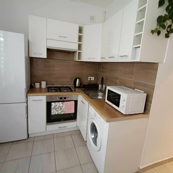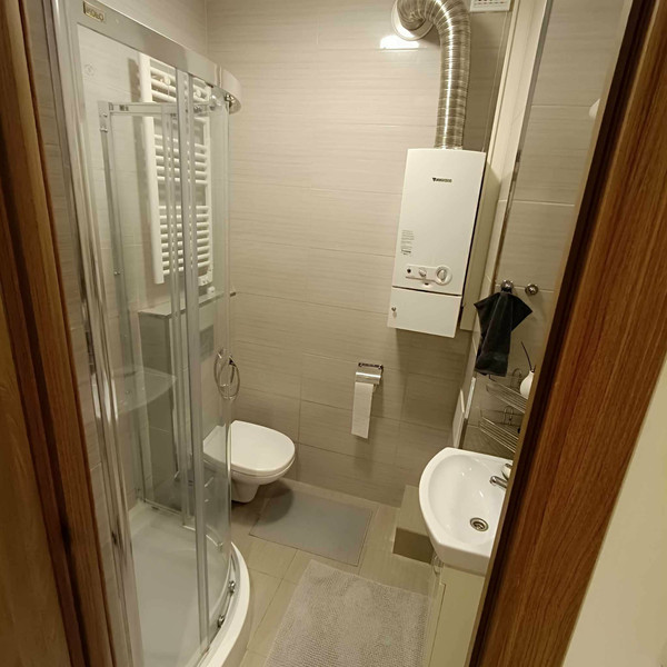 Osobna, dobrze wyposażona kuchnia oraz łazienka z prysznicem i toaletą. Dodatkowym atutem jest przedpokój z dużą ilością miejsca do przechowywania.