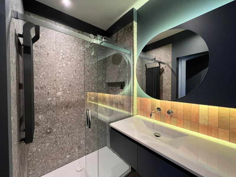 The apartment is located on the 3rd floor of a luxurious apartment building, located in a row of buildings on Wrocławska Street in the Krowodrza district of Krakow. The location is perfectly connected with the rest of the city, close to a rich offer of commercial and service outlets with the charming addition of the proximity of the Nowy Kleparz market. Near the apartment there are the most important academic centers, communication hubs and the Old Town Square is only 2 km away. In the modern building there are elegantly furnished common parts, elevators, monitoring and a 24-hour concierge service where, for example, couriers can leave packages.