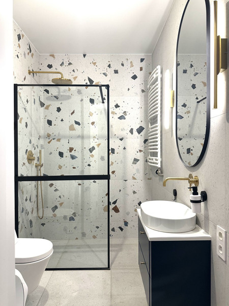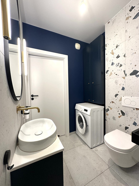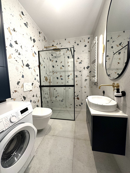 - łazienka z prysznicem i pralką