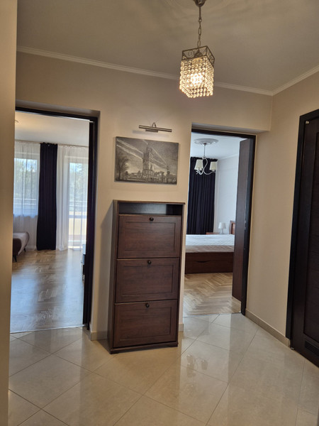 - Przedpokoju - z szafą na ubrania, szafką na buty oraz miejscem na pralkę (Candy) i odkurzacz.