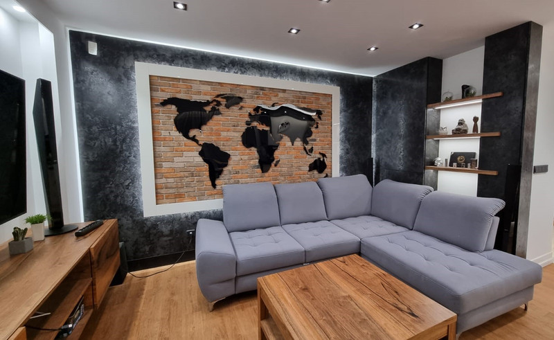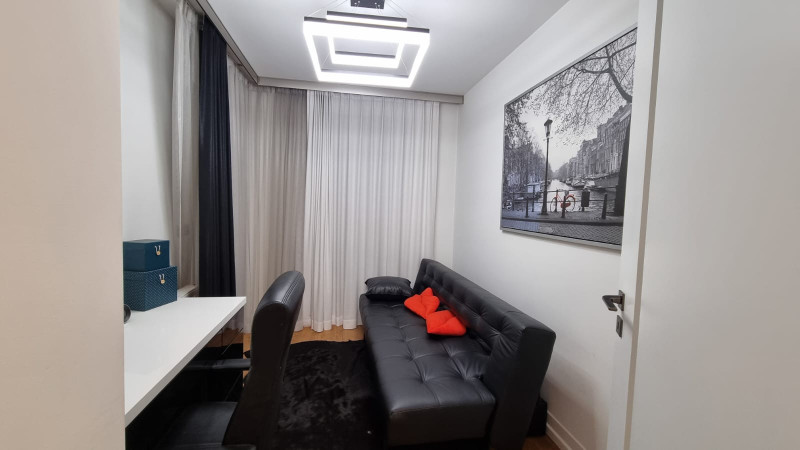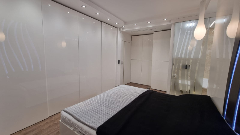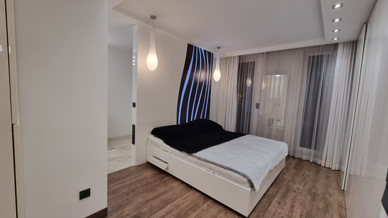 Wnętrze zostało zaprojektowane z myślą o najbardziej wymagających najemcach. Wysoki standard wykończenia, klimatyzacja w całym mieszkaniu w sypialni niezależna, w pełni wyposażona kuchnia także w małe sprzęty kuchenne, garczki, sztućce i porcelanę (wszystkie sprzęty są nowe). Zabudowana pralka, dwa telewizory, elektrycznie rozsuwane zasłony, dwie łazienki, garderoba, duża otwarta przestrzeń zapewniają komfort na najwyższym poziomie.