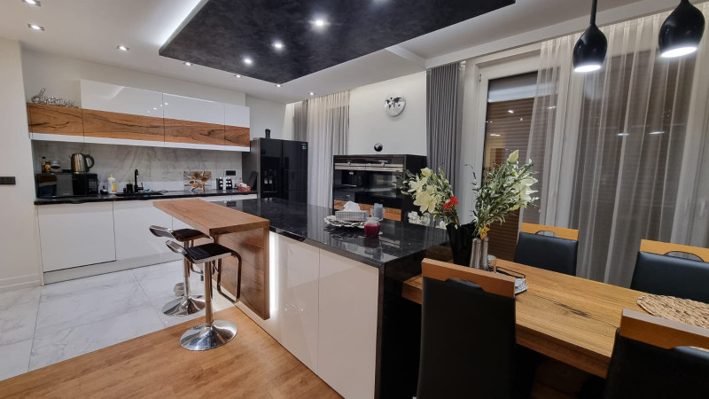 • nowoczesna, w pełni wyposażona kuchnia z wyspą otwarta na salon