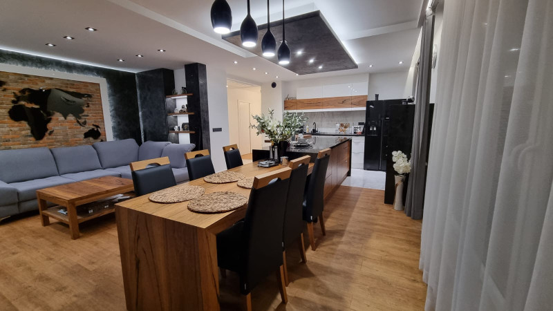 • reprezentacyjny salon połączony z kuchnią i tarasem