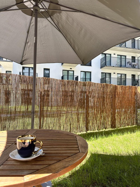 Z obu pokoi jest wyjście na przynależny do mieszkania ogródek o dodatkowej powierzchni 20m2