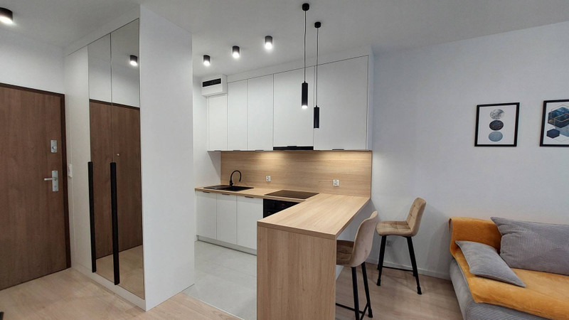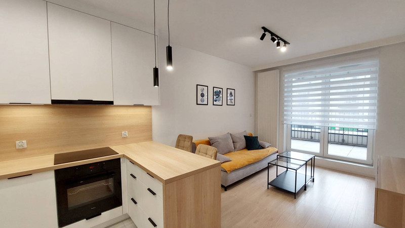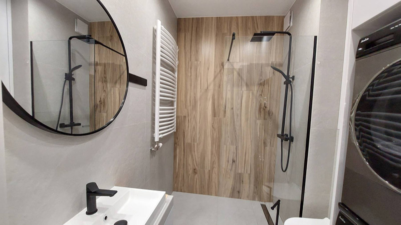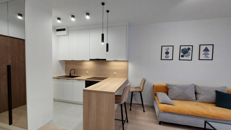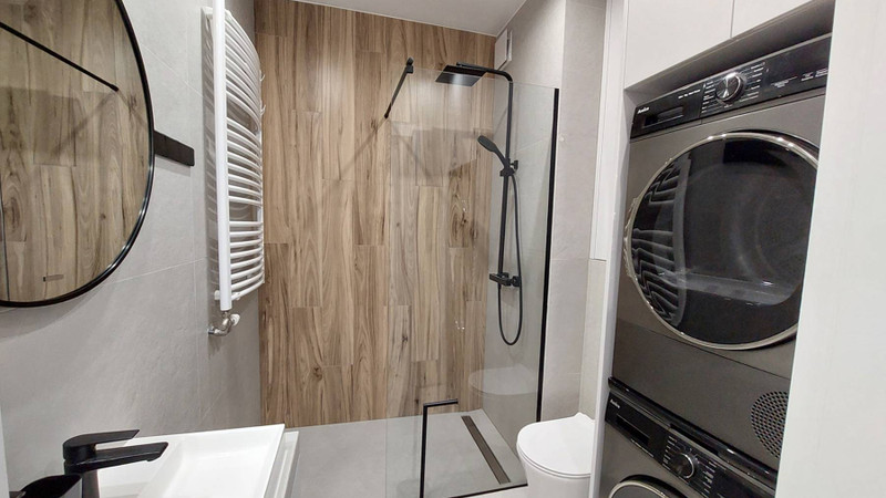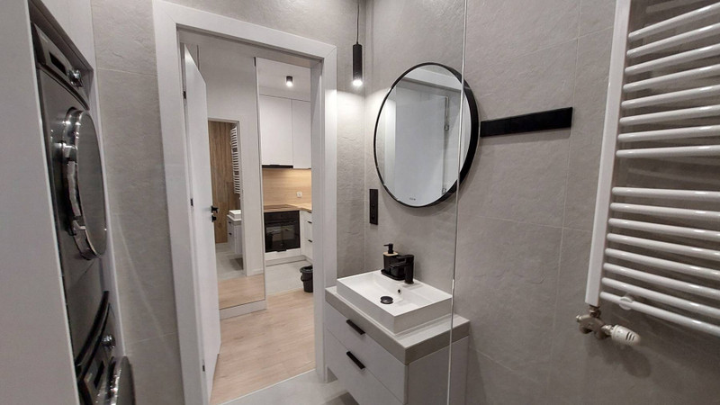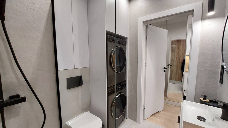 Nowe mieszkanie urządzone w 2025 roku. Wszystko jest nowe: nowe meble, nowy sprzęt AGD: lodówka, pralka, nowoczesna suszarka do prania z pompą ciepła, nowoczesny prysznic itd.