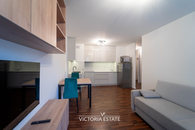 - Pokój dzienny: sofa z funkcją spania, TV, zabudowa RTV