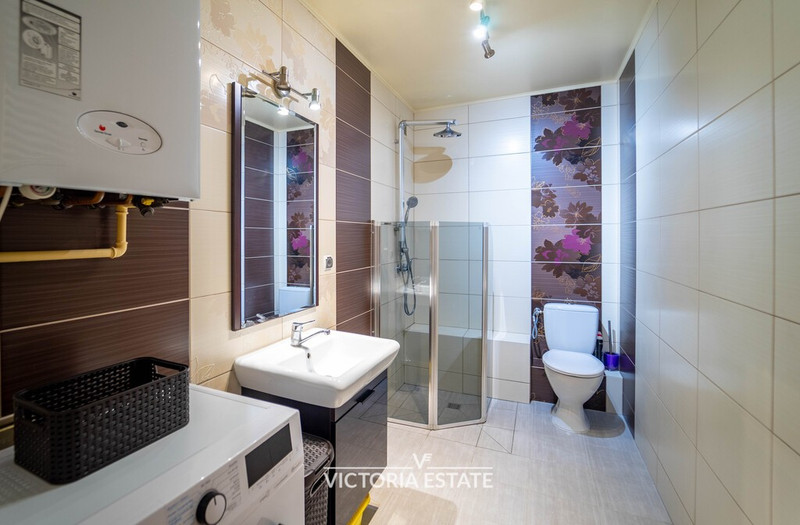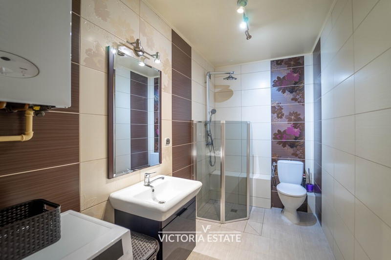 - Łazienka: prysznic, pralka, toaleta, umywalka, grzejnik drabinkowy
