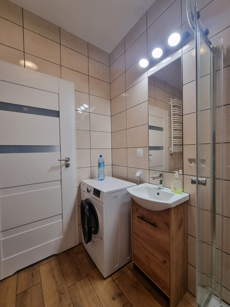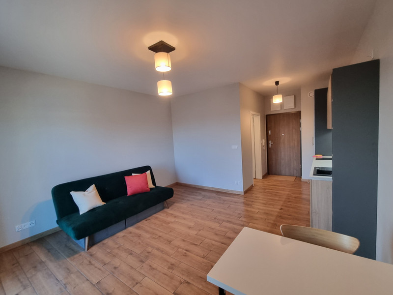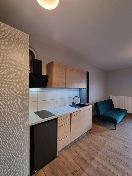 Do wynajęcia nowe mieszkanie w nowoczesnym budynku oddanym do użytku w grudniu 2024 r. Mieszkanie zlokalizowane jest na 5 piętrze (2 windy). Składa się z obszernego pokoju z aneksem kuchennym, przedpokoju, łazienki i balkonu. Powierzchnia mieszkania wynosi 27,50 m2 (plus balkon).