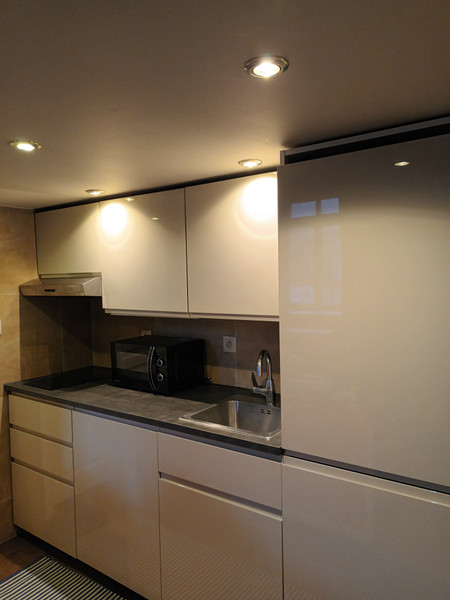Kuchnia jest wygodna i przestronna, wyposażona w liczne szafki, lodówkę z zamrażarką oraz pralkę. W mieszkaniu zastosowano zarówno mocne oświetlenie główne, jak i delikatniejsze światło budujące klimat. Łazienka urzeka klimatycznym podświetleniem LED, które nadaje wnętrzu wyjątkowego charakteru. Ogrzewanie elektryczne zapewnia komfort przez cały rok. Wejście do mieszkania prowadzi przez współdzielony przedsionek, a drzwi są antywłamaniowe, co dodatkowo zwiększa poczucie bezpieczeństwa lokatora. Oferujemy, również dostęp do szybkiego internetu.