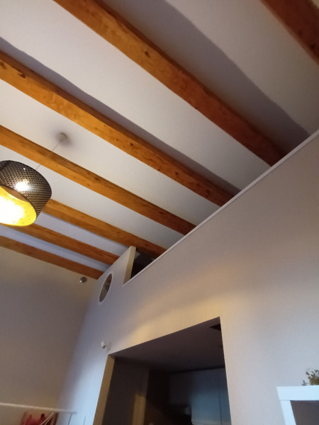 Wnętrze zachwyca przestrzenią i niepowtarzalnym charakterem – uwagę przyciągają bardzo wysokie sufity oraz widoczne belki, które nadają mieszkaniu loftowego, designerskiego stylu. Jasne ściany, duże przeszklenia oraz przemyślane oświetlenie sprawiają, że przestrzeń jest niezwykle przyjemna i pełna światła. W części dziennej znajduje się komfortowa, duża skórzana sofa oraz telewizor, a także modne biurko barowe, które idealnie sprawdzi się zarówno do pracy, jak i codziennych posiłków. Antresola została zaaranżowana jako przytulna strefa sypialniana z dużym łóżkiem, zapewniającym wygodę i poczucie oddzielenia części wypoczynkowej od salonu. Mieszkanie oferuje również ogromną szafę przy wejściu oraz liczne półki i schowki, dzięki czemu bez problemu pomieści wszystkie rzeczy i pozwoli zachować idealny porządek. Dodatkowym atutem jest przestronny parapet oraz duża ilość funkcjonalnych powierzchni do przechowywania.