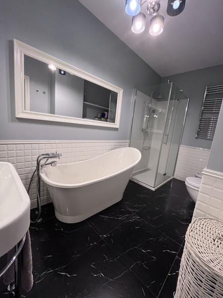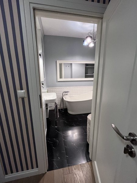 - 57 m² : salon z jadalnia i kuchnia, pokój, garderoba, duża łazienka z wanna i prysznicem oraz przedpokój