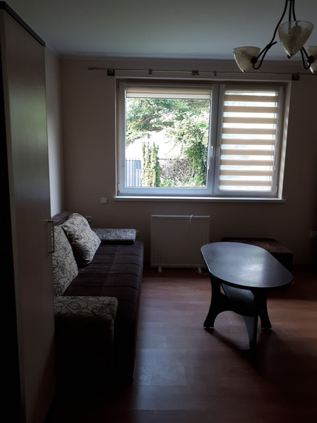Mieszkanie 45m2 w wolnostojącym małym domu. Dwa pokoje po 15m2, częściowo umeblowane. Kuchnia, łazienka, taras.